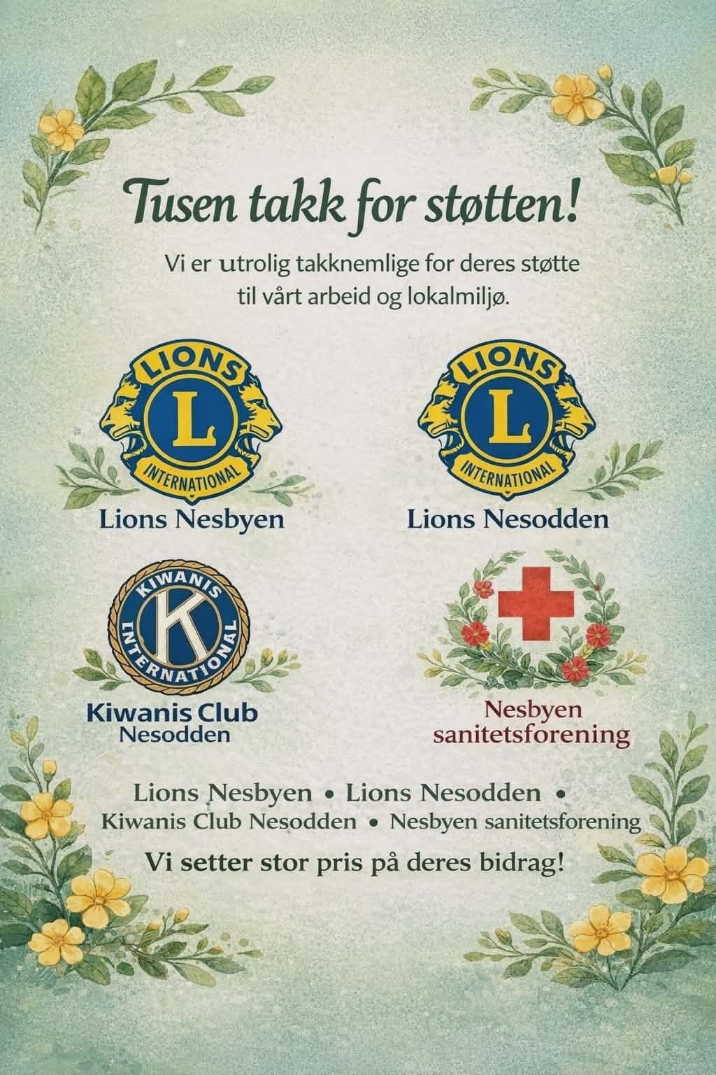 Vi er takknemlige for støtten vi har mottatt fra ulike organisasjoner i 2025